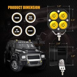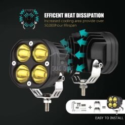 Package Includes: 2 x 4 LED CREE Fog Light Auxiliary Light for all Motorcycles – 60w – Yellow