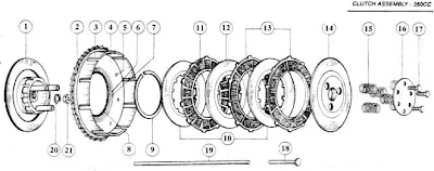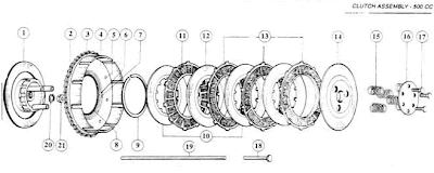 The 500cc clutch is similar to that of 350cc, except that there are six driven plates and five driving plates.