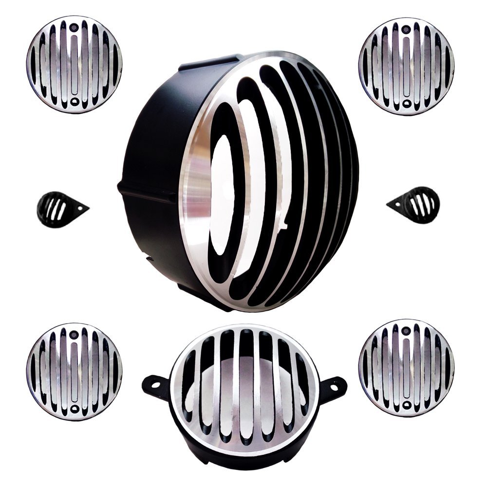 Last from Dug Dug Basic Essential Kit is Grill Set which is Made from Iron light and good quality. It consists of 8 Pieces (Headlight, Tiger Eye, Tail Light, Indicators). It protects your Royal Enfield Accessories i.e. lights, headlamp, tail light, indicators and parking lights and gives retro look to the bike.