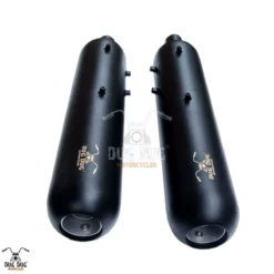 Dug Dug Is proud to offer our new performance range of exhausts made for Royal Enfield Shotgun 650. One of the best ways to quickly and inexpensively customize your 650 Twins is to add a set of slip-on mufflers. Dug Dug Tornado Exhaust replaces your stock exhaust with high performance free flow output with optimal increase in performance pickup and power. With Dug Dug Tornado Slip-ons, you will get the benefit of increased performance and the bellowing, throaty growl of a SS-304 premium exhaust. In addition to the performance and sound, you get SS-304 joint shields with stylish look which is blue proof compliment over the Exhaust and Pipe Joint bodies.