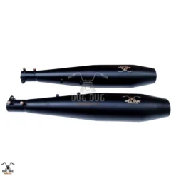 Dug Dug Is proud to offer our new performance range of exhausts made for Royal Enfield Shotgun 650. One of the best ways to quickly and inexpensively customize your 650 Twins is to add a set of slip-on mufflers. Dug Dug Venom Exhaust replaces your stock exhaust with high performance free flow output with optimal increase in performance pickup and power. With Dug Dug Venom Slip-ons, you will get the benefit of increased performance and the bellowing, throaty growl of a SS-304 premium exhaust. In addition to the performance and sound, you get SS-304 joint shields with stylish look which is blue proof compliment over the Exhaust and Pipe Joint bodies.