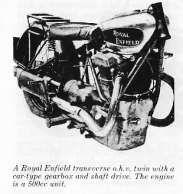 In 1934 Royal Enfield experimented with a transverse V-twin 500cc OHV engine with shaft drive!