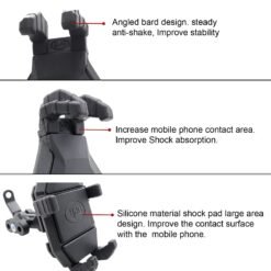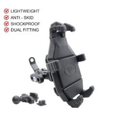 HJG Shockproof Mobile Holder Jaw Grip with Damper and Zero Vibration for Motorcycle Anti-Shake Anti-Theft. Our advanced damper holder technology keeps your phone steady and shake-free, even on the bumpiest roads. This ensures that your footage is always stable and high-quality, allowing you to capture all your adventures with ease. Our versatile bike mount also features a 360-degree rotation that provides a full range of viewing angles. You can easily adjust your phone to your preferred position, no matter what kind of bike, motorcycle, or stroller you have. And with universal compatibility, our mobile phone holder is designed to fit all smartphones within the 4.7”-7.2” screen size range. The Anti-Shake Motorcycle Mobile Damper Holder also comes equipped with an antitheft screw that ensures maximum security and protection for your phone. The unique screw design keeps your phone and holder secure, preventing any potential theft while you’re out on the road. But that’s not all – our holder also features an adjustable handlebar Aluminium mounting bracket that fits handlebars with diameters of 0.87” (22mm), 1.0” (25.4mm), and 1.26” (32mm), providing a secure and stable fit for your device. This makes it perfect for a wide range of handlebars, ensuring you can use it on any bike or motorcycle you have. Installing the holder is incredibly easy and requires no complicated tools or equipment. Simply mount it onto your bike’s handlebars, adjust the bracket to fit the diameter of your handlebar, tighten the antitheft screw, and you’re ready to hit the road. And with its durable construction and high-quality ABS & Aluminum materials, our holder is built to last and provide long-lasting support for your phone. Don’t settle for shaky, blurry footage or worry about the security of your phone while you’re out on the road. Order HJG Shockproof Mobile Holder Jaw Grip with Damper and Zero Vibration for Motorcycle Anti-Shake Anti-Theft.