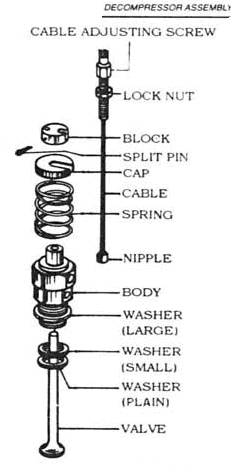 Remove the de-compressor cable from the lever end of the handlebar (LH side).