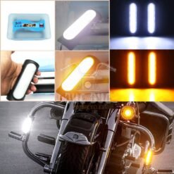 New Dug Dug Leg Guard LED DRL Turn Signal Hazard Crash Bar Lights exclusively available at Dug Dug Motorcycles. These are aluminium based heavy quality crash bar lights which can also be used as turn signal indicators. Main purpose of these lights is to be used as hazard lights. These are very bright and can be seen from far distance in the rearview mirror of any vehicle at front. Also, when you give indicators it blink like matrix and. Gives very good look. Dug Dug Crash Bar Lights fits all OEM leg guards with diameter of 1 to 1.5 inches. These are very easy to install and looks really good on the bike.