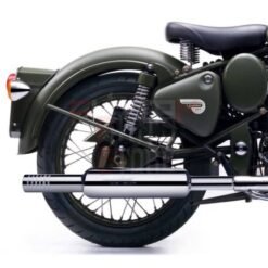 -Dug Dug Short Bottle Chrome Exhaust Silencer Free Flow Features :- Looking for something different for your Royal Enfield then Dug Dug Exhaust Silencer is just what you are looking Completely Customized Exhaust exclusively for Royal Enfield Models.It has innovative and eye catching design Stunning Bike silencer for Royal Enfield of silver color giving attractive shine and enhancing appearance of your bike.steel material and its performance add in efficiency of your bike and its function. Its must add accessory to your bike. Its stylish looks and magnificient sound can easily attract people from far. It will help you in garner attention while riding. It will turn heads of people towards your bike and you. This chrome coated silencer is easy to install in your bike. It will make your ride worth it for sure & it comes with Zed Clamp (Bush provided only for 2017 bs4-bs6 model engine)Package Contents:- Dug Dug Bike Mini Punjab Dholki Short Bottle Empty Free Flow Bullet Exhaust Suitable Silencer Chrome BS3 & BS4 Model For Royal Enfield Classic Battle Green 350