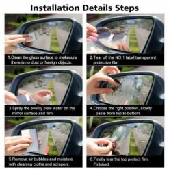 Easy Installation: Just take a few minutes to install it to your Rear-view Mirror directly, squirt a little water on the mirror, install the protective film to the mirror and adhere it, then flatten it with a small scraper, quick and easy