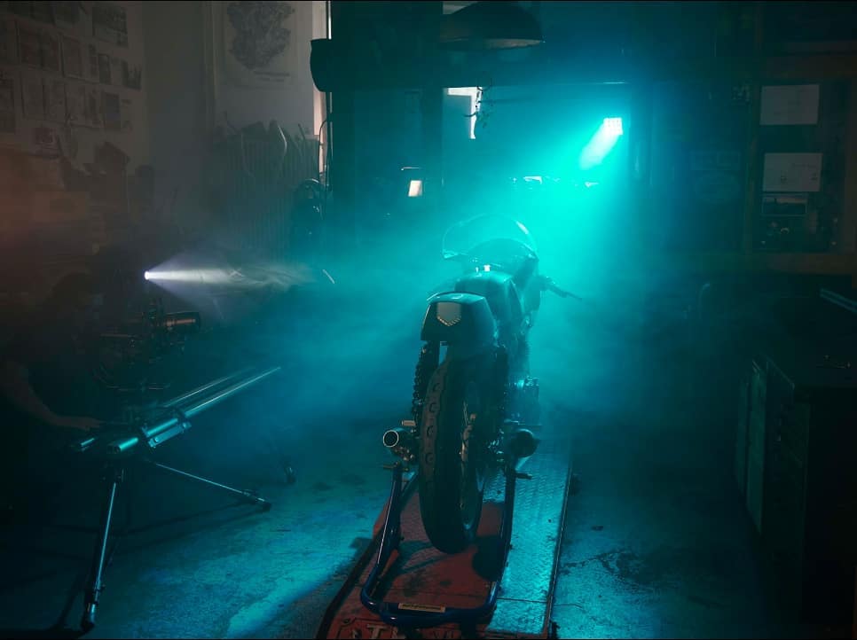 The Young Guns Speed Shop has taken the café racer approach to this build. The bike features a strange but interesting paint job that takes inspiration from India’s space program and the Rohini satellites. The bulbous café racer fairing, the flat seat and the boxy tail section give the motorcycle a retro appearance. The bike is finished in bare aluminium and has reflective paint on some of the body work.
